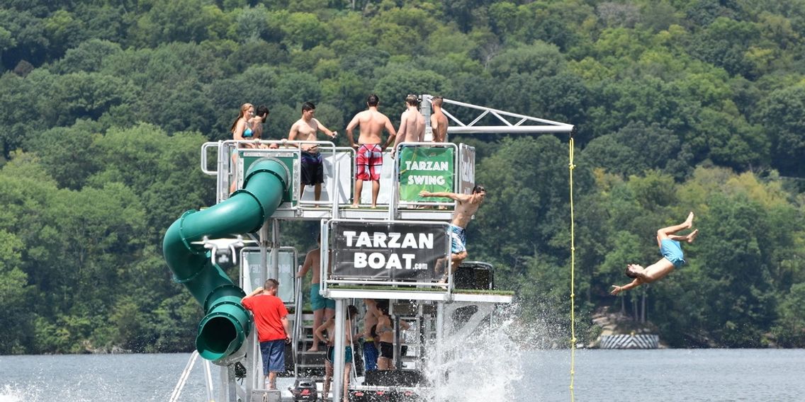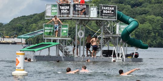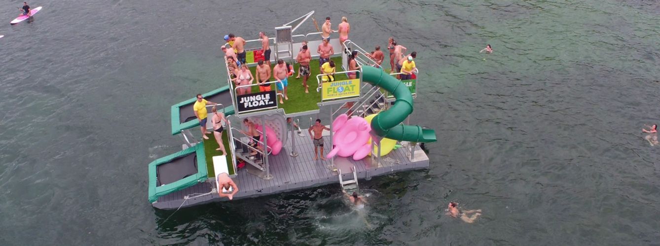 The Mobile Water Park known as the "Jungle Float" offers ticketed guest the opportunity to experience all the thrills of a water park on a floating 35-foot platform! The Jungle Float in Knoxville offers a rope swing, two trampoline platforms, a diving board, a high jump platform and a water slide! Reserve your tickets today for the newest Mobile Water Park in Knoxville. Perfect for birthday parties, summer camps or a couple hours to beat the summer heat. Bring the Kids and Family and enjoy time on the water! Certified lifeguards onboard!